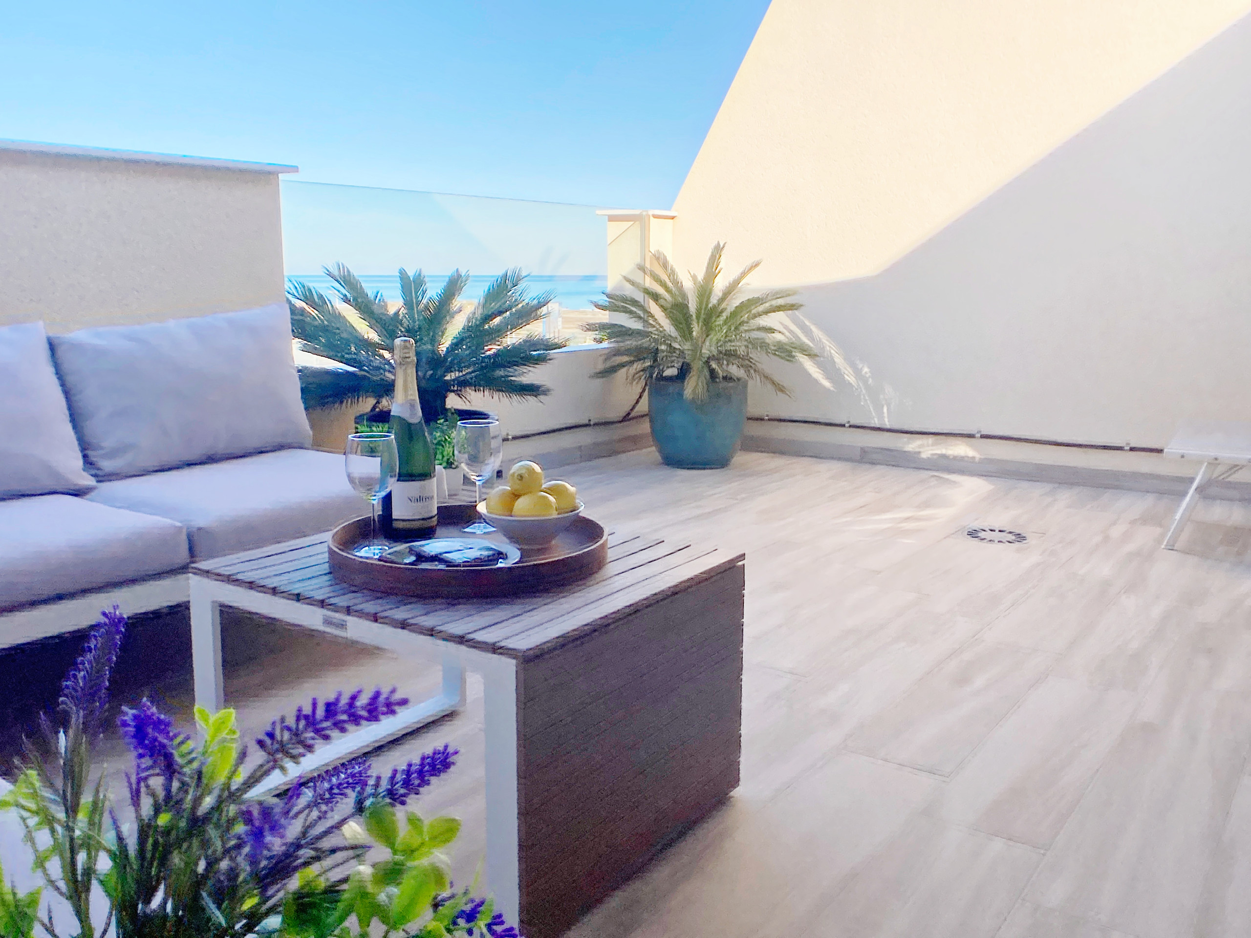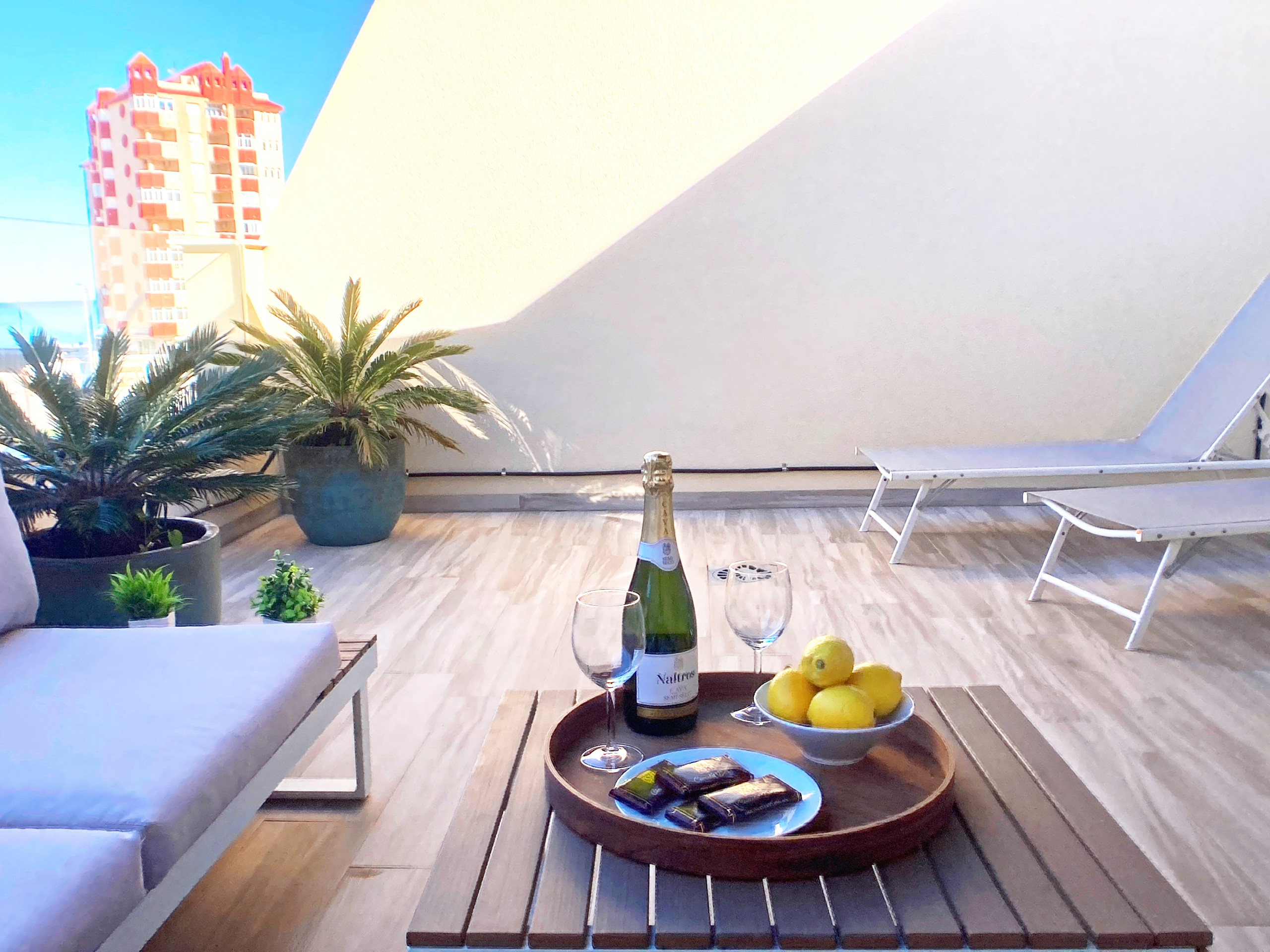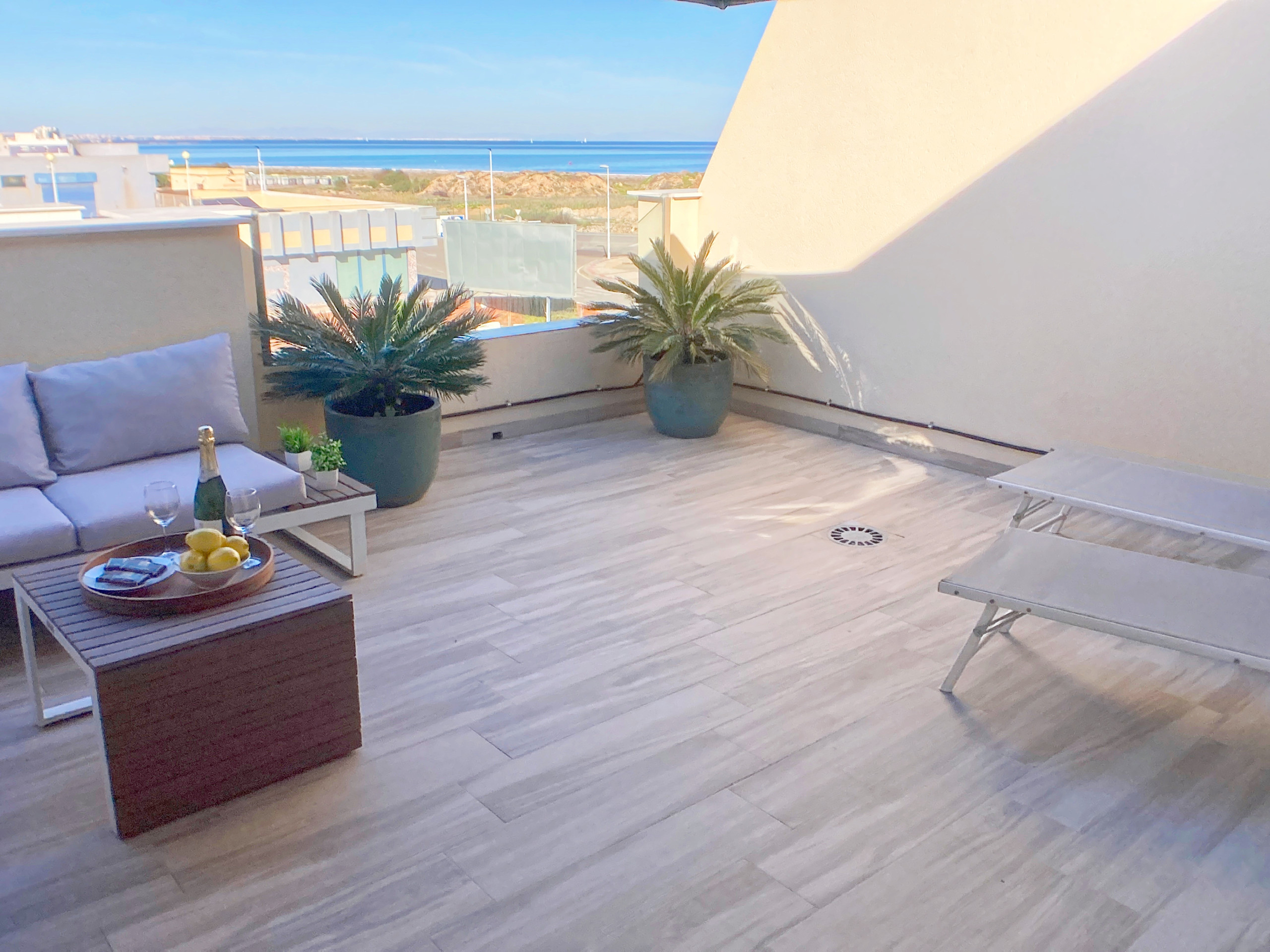 Pero eso no es todo, en la buhardilla encontrarás un tercer dormitorio adicional con su propia terraza solarium, perfecta para relajarse al sol, con tumbonas cómodas y preciosas vistas.