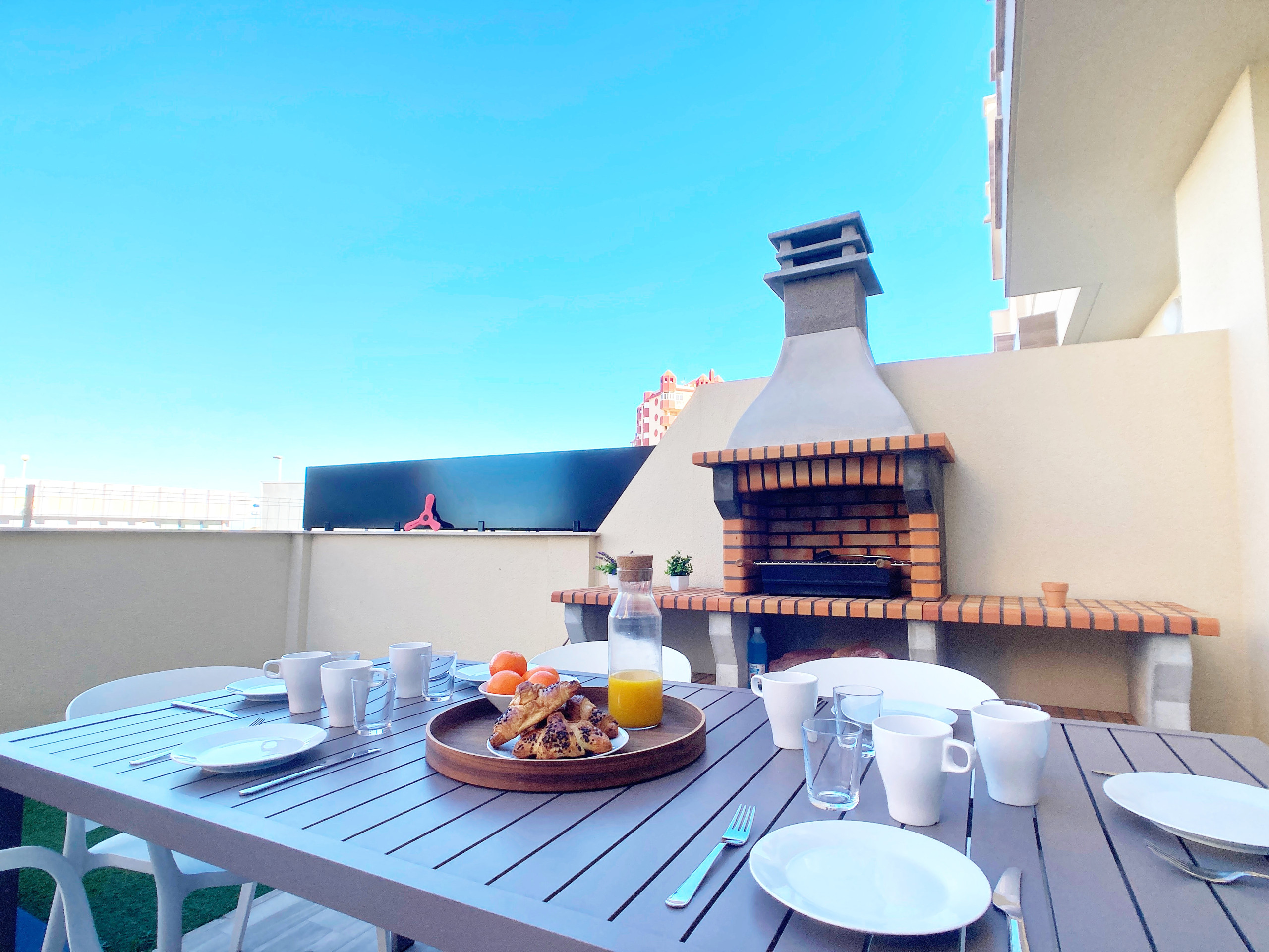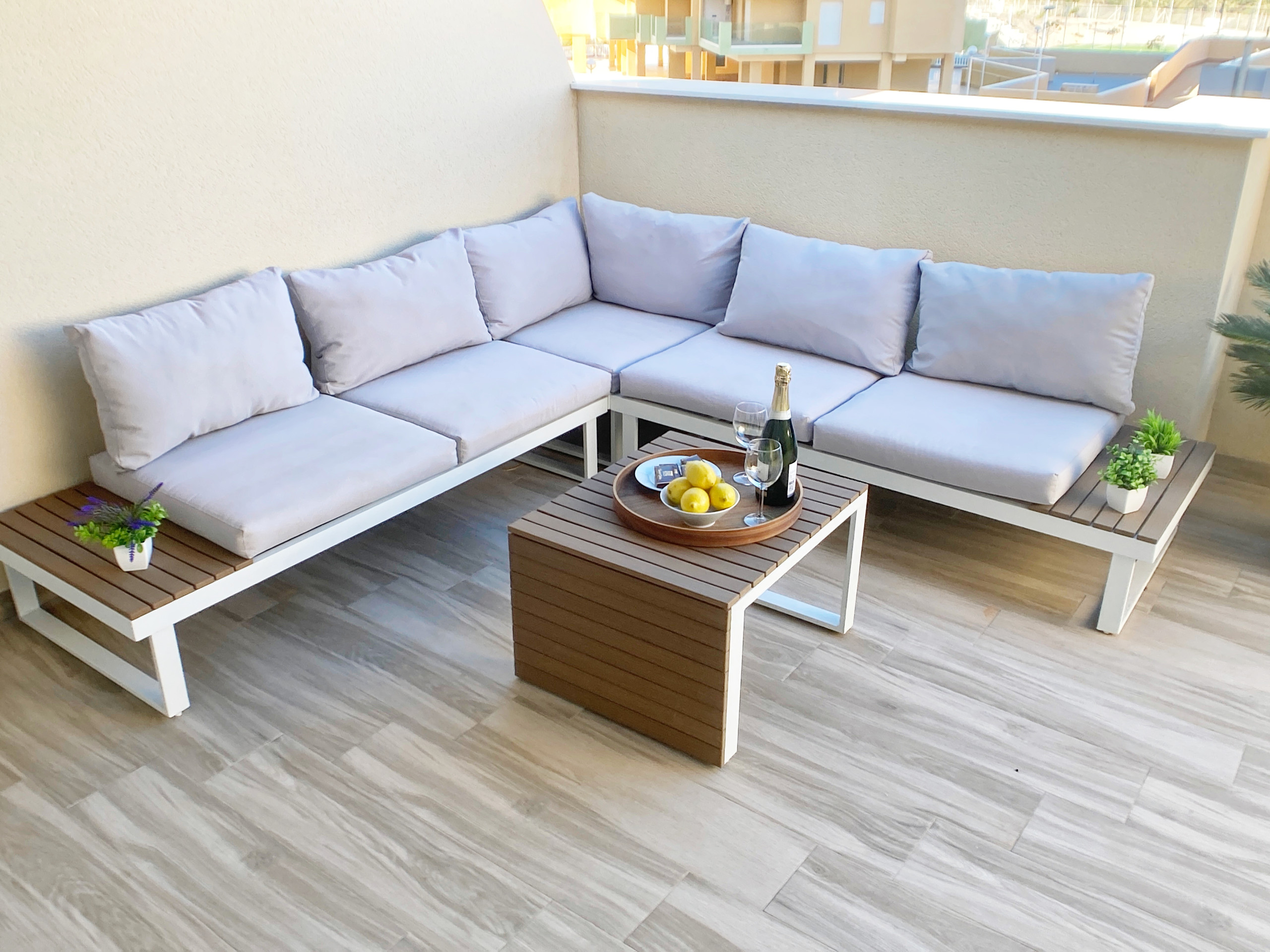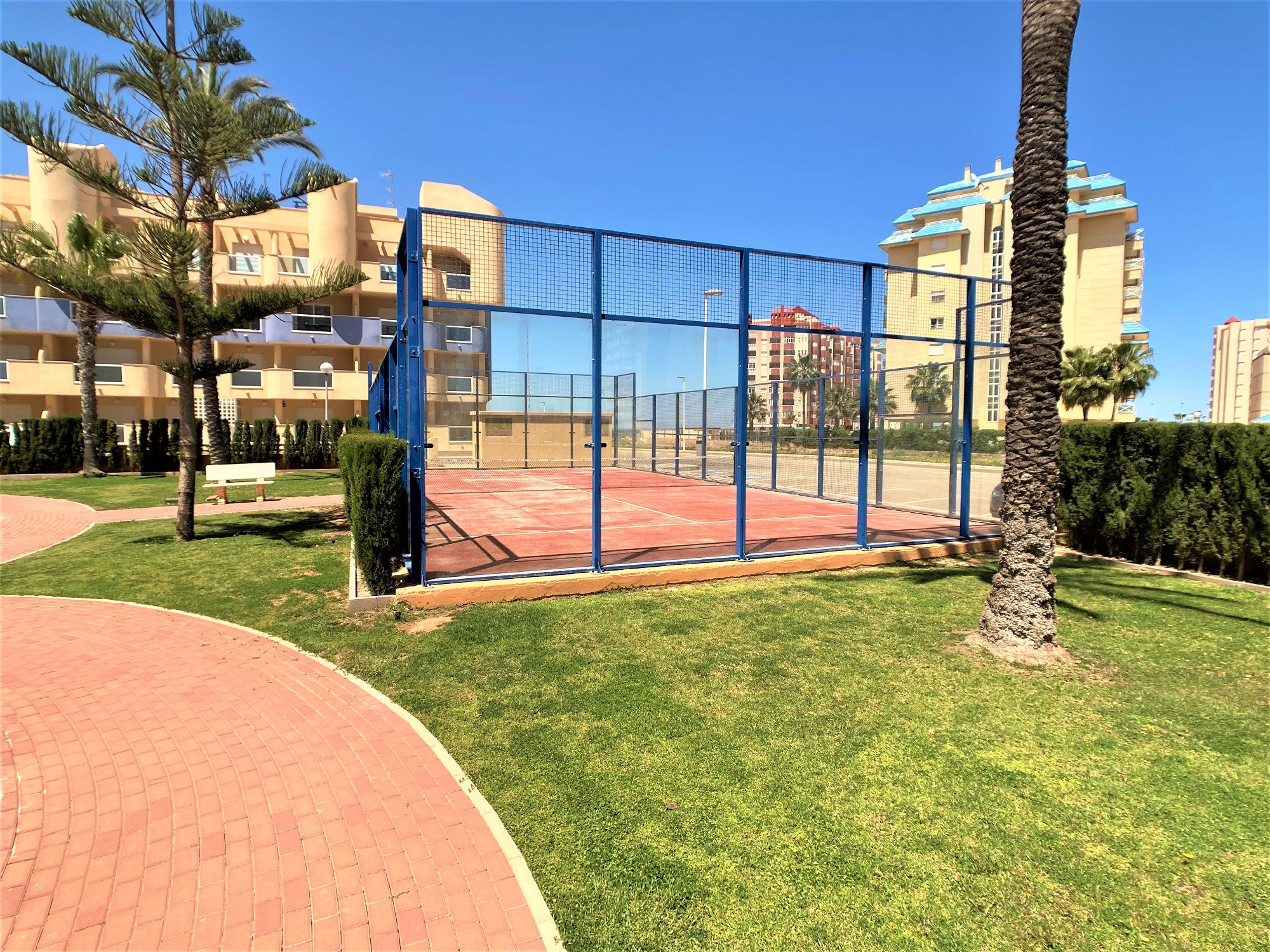 La urbanización, Los Miradores del Puerto, en el km 14, cuenta con una amplia zona comunitaria con jardín, pista de pádel y piscina.